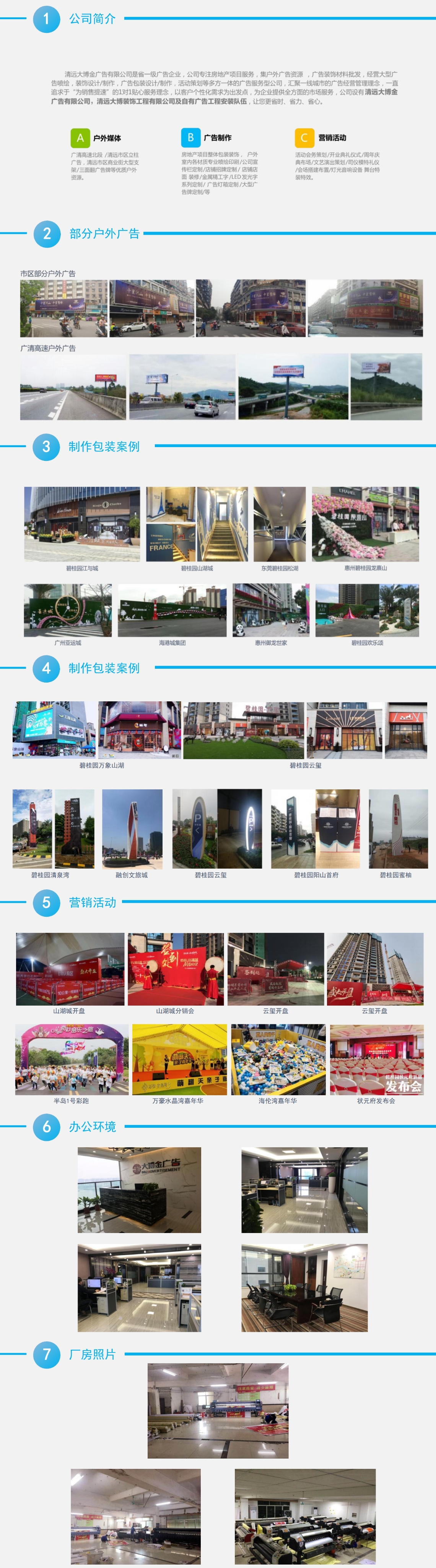 清遠(yuǎn)大博金廣告有限公司是省一級(jí)廣告企業(yè),公司專注房地產(chǎn)項(xiàng)目服務(wù),集戶外廣告資源,廣告裝飾材料批發(fā),經(jīng)營(yíng)大型廣告噴繪,裝飾設(shè)計(jì)制作,廣告包裝設(shè)計(jì)制作,活動(dòng)策劃等多方一體的廣告服務(wù)型公司,匯聚一線城市的廣告經(jīng)營(yíng)管理理念,一致追求于“為銷售提速”的1對(duì)1貼心服務(wù)理念,以客戶個(gè)性化需求為出發(fā)點(diǎn),為企業(yè)提供全方面的市場(chǎng)服務(wù),公司設(shè)有清遠(yuǎn)大博金廣告有限公司,清遠(yuǎn)大博金裝飾工程有限公司及自有廣告工程安裝隊(duì)伍,讓您更省時(shí)、省力、省心。