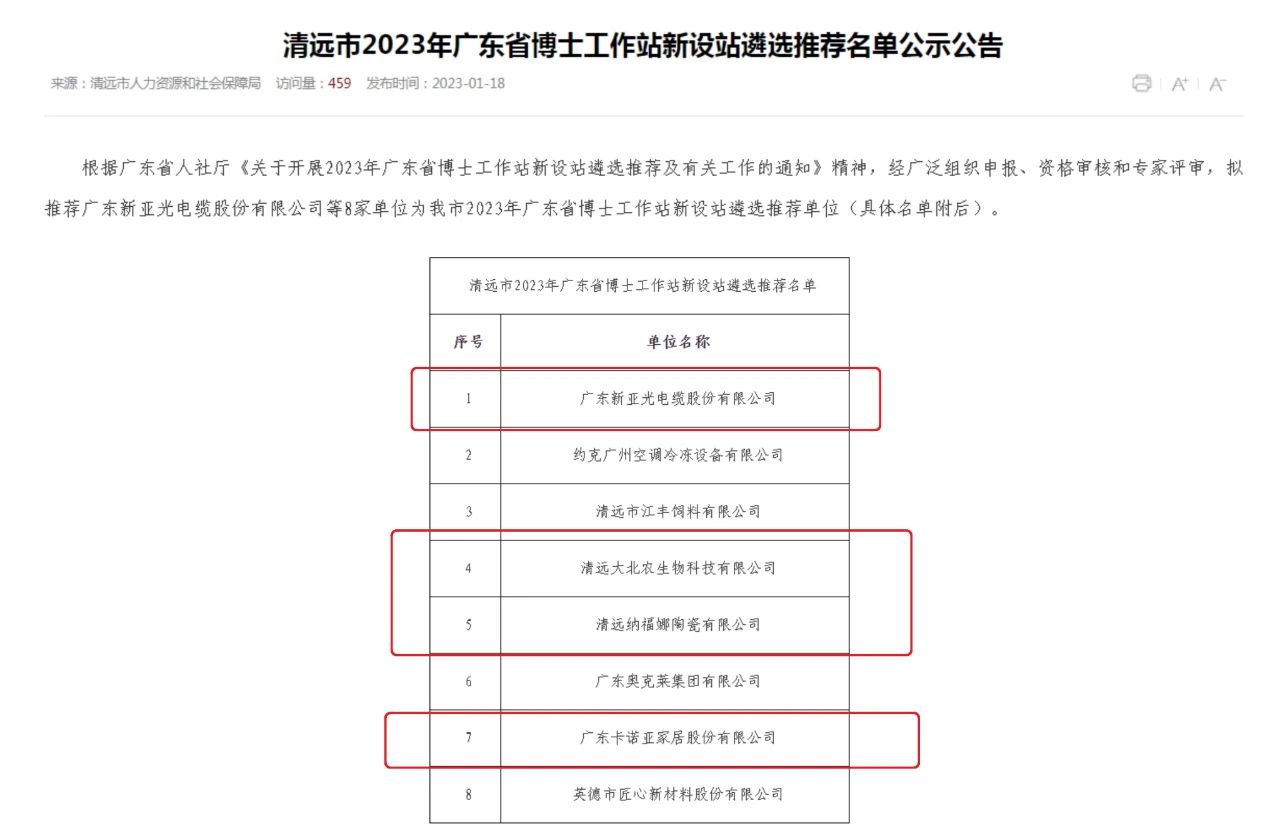 近日,經(jīng)省人社廳批準(zhǔn)同意(粵人社函〔2023〕76號(hào)),位于清城區(qū)的廣東新亞光電纜股份有限公司、清遠(yuǎn)大北農(nóng)生物科技有限公司、清遠(yuǎn)納福娜陶瓷有限公司、廣東卡諾亞家居股份有限公司4家企業(yè)成功獲批設(shè)立廣東省博士工作站,占全市新增博士工作站的50%,且建站申報(bào)通過(guò)率達(dá)到100%,這是清城區(qū)博士、博士后科研平臺(tái)建設(shè)取得的又一新突破!目前,清城區(qū)累計(jì)創(chuàng)建省級(jí)博士工作站10個(gè)、博士后創(chuàng)新實(shí)踐基地1個(gè),涉及生物醫(yī)藥、新材料、農(nóng)業(yè)等多種類(lèi)型產(chǎn)業(yè)。
