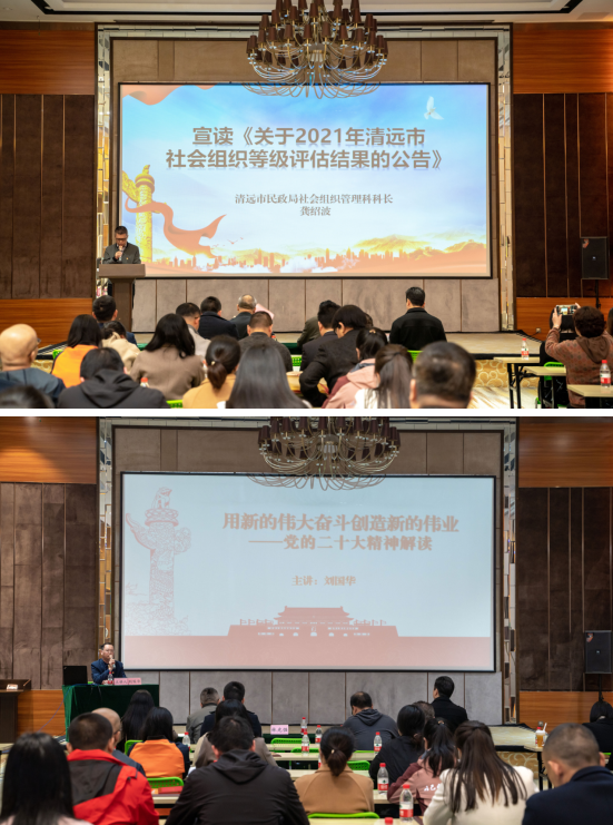 3月30日下午,清遠(yuǎn)市社會(huì)組織總會(huì)在宜家天潤(rùn)商學(xué)院培訓(xùn)室開展學(xué)習(xí)貫徹黨的二十大精神暨創(chuàng)先爭(zhēng)優(yōu)表彰大會(huì),我協(xié)會(huì)黨支部書記彭春瑤和協(xié)會(huì)副秘書長(zhǎng)楊文泳參加了此次活動(dòng)。