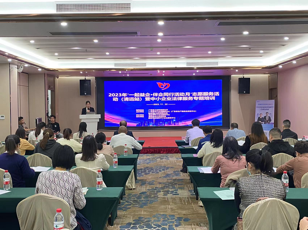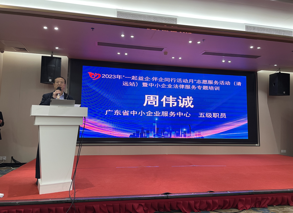 為深入貫徹落實(shí)工業(yè)和信息化部辦公廳《關(guān)于開展2023年“一起益企”中小企業(yè)服務(wù)行動(dòng)的通知》(工信廳企業(yè)函〔2023〕68號(hào))及《廣東省工業(yè)和信息化廳 廣東省民政廳轉(zhuǎn)發(fā)開展志愿服務(wù)促進(jìn)中小企業(yè)發(fā)展指導(dǎo)意見的通知》(便函〔2020〕1095號(hào))等文件精神,以“精準(zhǔn)服務(wù),助企惠企”為主題,匯聚各類優(yōu)質(zhì)服務(wù)資源,推動(dòng)我省中小企業(yè)高質(zhì)量發(fā)展。由廣東省工業(yè)和信息化廳指導(dǎo),廣東省中小企業(yè)服務(wù)中心、清遠(yuǎn)市工業(yè)和信息化局主辦,清遠(yuǎn)市中小企業(yè)服務(wù)中心承辦,清遠(yuǎn)市中小企業(yè)協(xié)會(huì)、清遠(yuǎn)市清城區(qū)中小企業(yè)服務(wù)中心協(xié)辦的2023年“一起益企·伴企同行活動(dòng)月”志愿服務(wù)活動(dòng)(清遠(yuǎn)站)暨中小企業(yè)法律服務(wù)專題培訓(xùn),在清遠(yuǎn)市迎賓館宴會(huì)廳2樓成功舉辦。