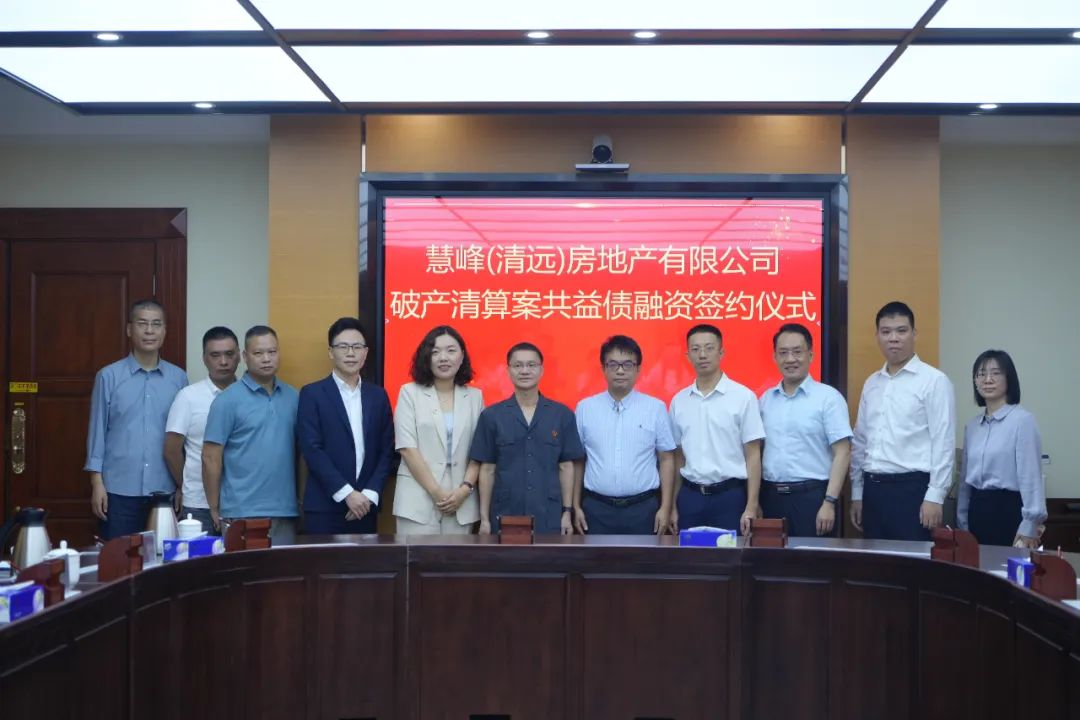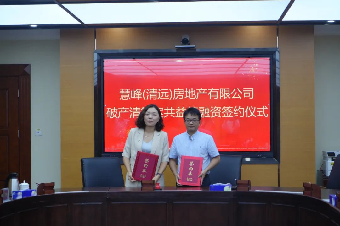 11月2日上午,“慧峰(清遠(yuǎn))房地產(chǎn)有限公司破產(chǎn)清算案共益?zhèn)谫Y簽約儀式”在清遠(yuǎn)市中級人民法院舉行。