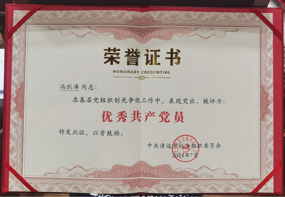 表彰活動中頒發(fā)了光榮在黨50周年紀念章以及評選2024年“兩優(yōu)一先”表彰對象,我協(xié)會黨支部黨員、紀檢委員馮劍濤同志憑借其在工作中的卓越表現(xiàn)和無私奉獻精神,榮獲了“優(yōu)秀共產黨員”的崇高稱號。