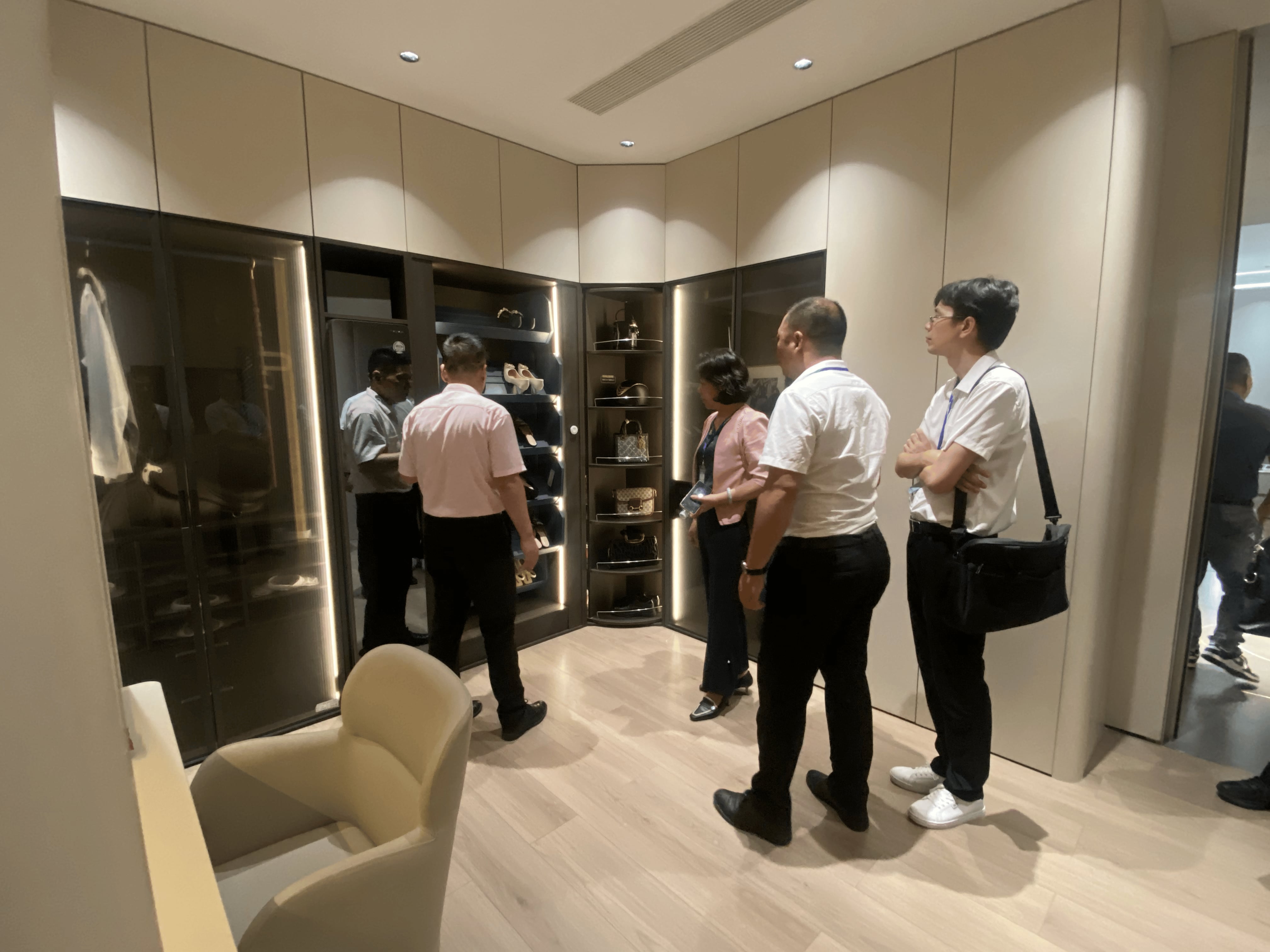 企業(yè)代表們?cè)诩揖友芯吭涸洪L(zhǎng)陳勇剛和人力資源部經(jīng)理陳耀文的帶領(lǐng)下,參觀了企業(yè)展廳及生產(chǎn)車間,親眼見(jiàn)證了從原材料到成品的華麗蛻變。讓企業(yè)代表們對(duì)卡諾亞家居的生產(chǎn)實(shí)力與質(zhì)量控制體系有了更加直觀的認(rèn)識(shí)。